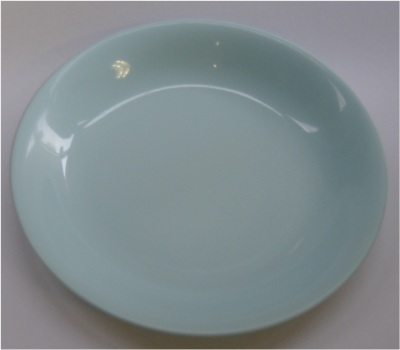 メラミン製菜皿「新古品」です。メーカー:三信加工 型 式:S-14LG 寸 法:φ183×H25 色 :青磁 材 質:メラミン 耐熱温度:120度 使用していませんが、多少キズがあります。