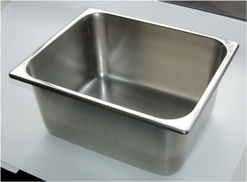18-8ホテルパン 「新古品」です。型 式:2126(1/2サイズ) 寸 法:327×265×H150 メーカー:スギコ産業 未使用品ですが多少キズがあります。